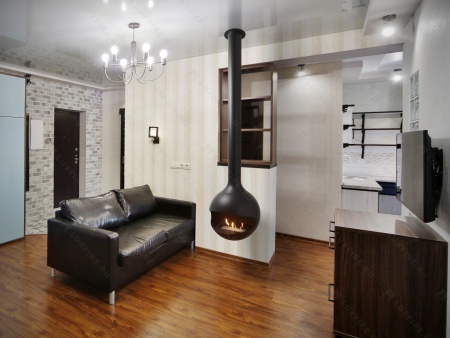 Представляет собой металлическую конструкцию, состоящую из сферического корпуса, трубы, потолочного адаптера и топливного блока. Биокамин монтируется к потолку.